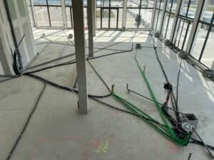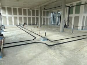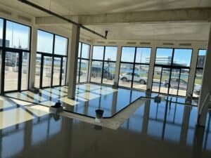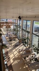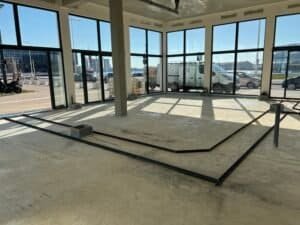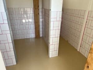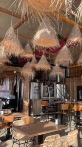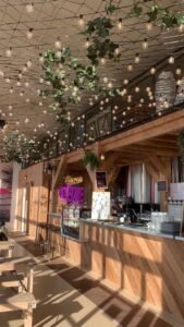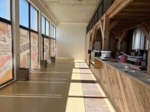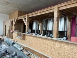 En parallèle, l’équipe s’est occupée de l‘installation de la plomberie nécessaire (bar, sanitaires, cuisine…), des réseaux électriques en monophasé et triphasé, ainsi que des différents revêtements pour le sol et les murs (résine, carrelage, peinture…).