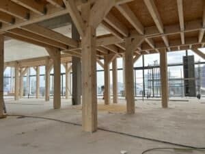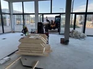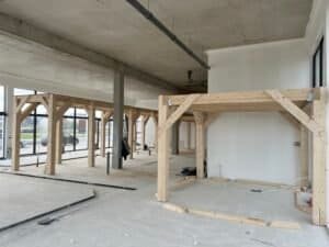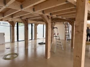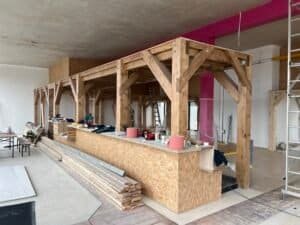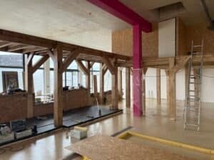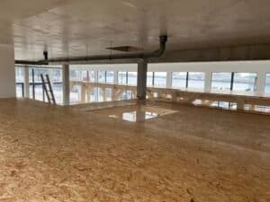 Par la suite, deux structures plancher en bois ont été conçues et montées, avec une attention particulière portée à la solidité : elles ont été étudiées pour supporter de lourdes charges sur certaines zones, afin de répondre aux besoins techniques des équipements à venir.