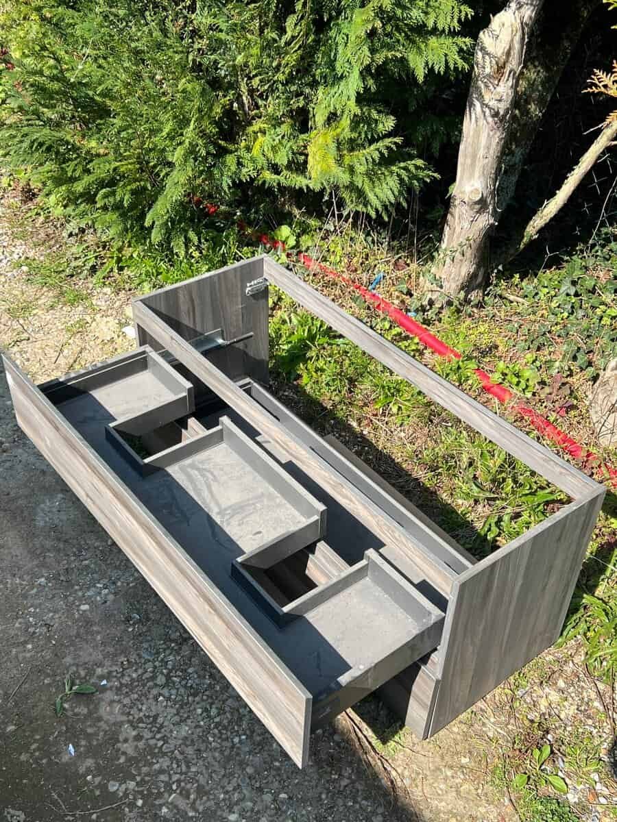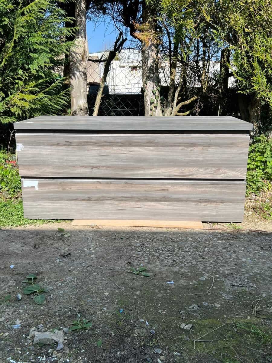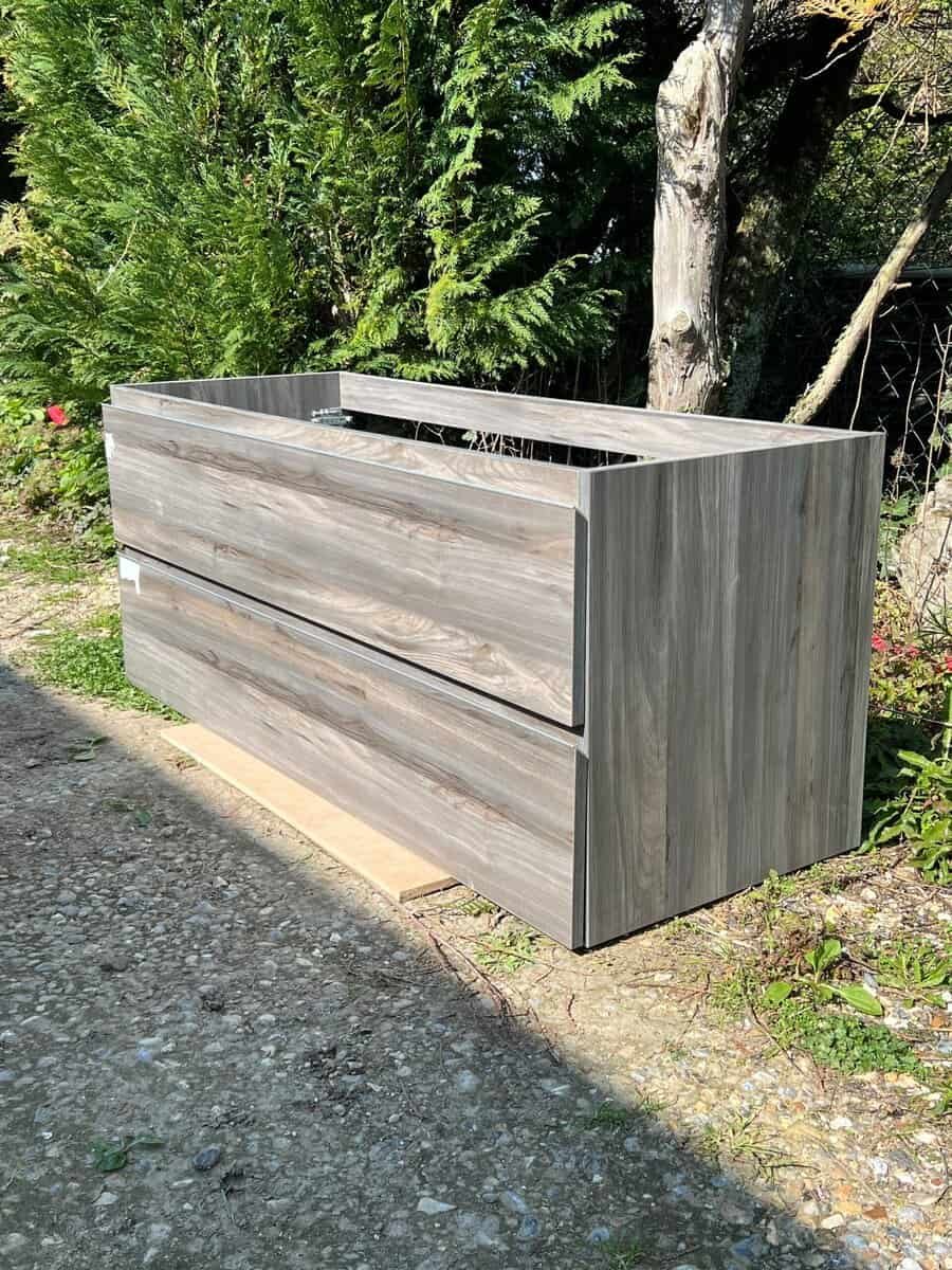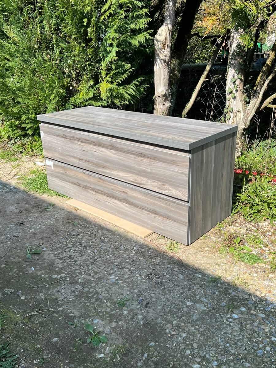 Meuble bas de salle de bain effet chêne foncé 2 tiroirs